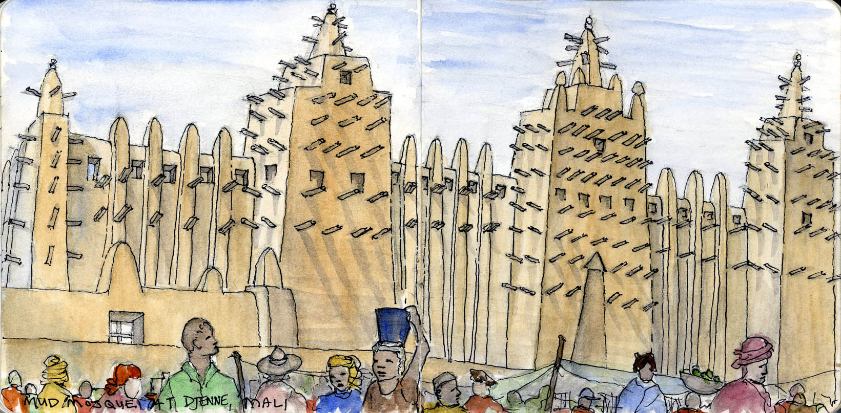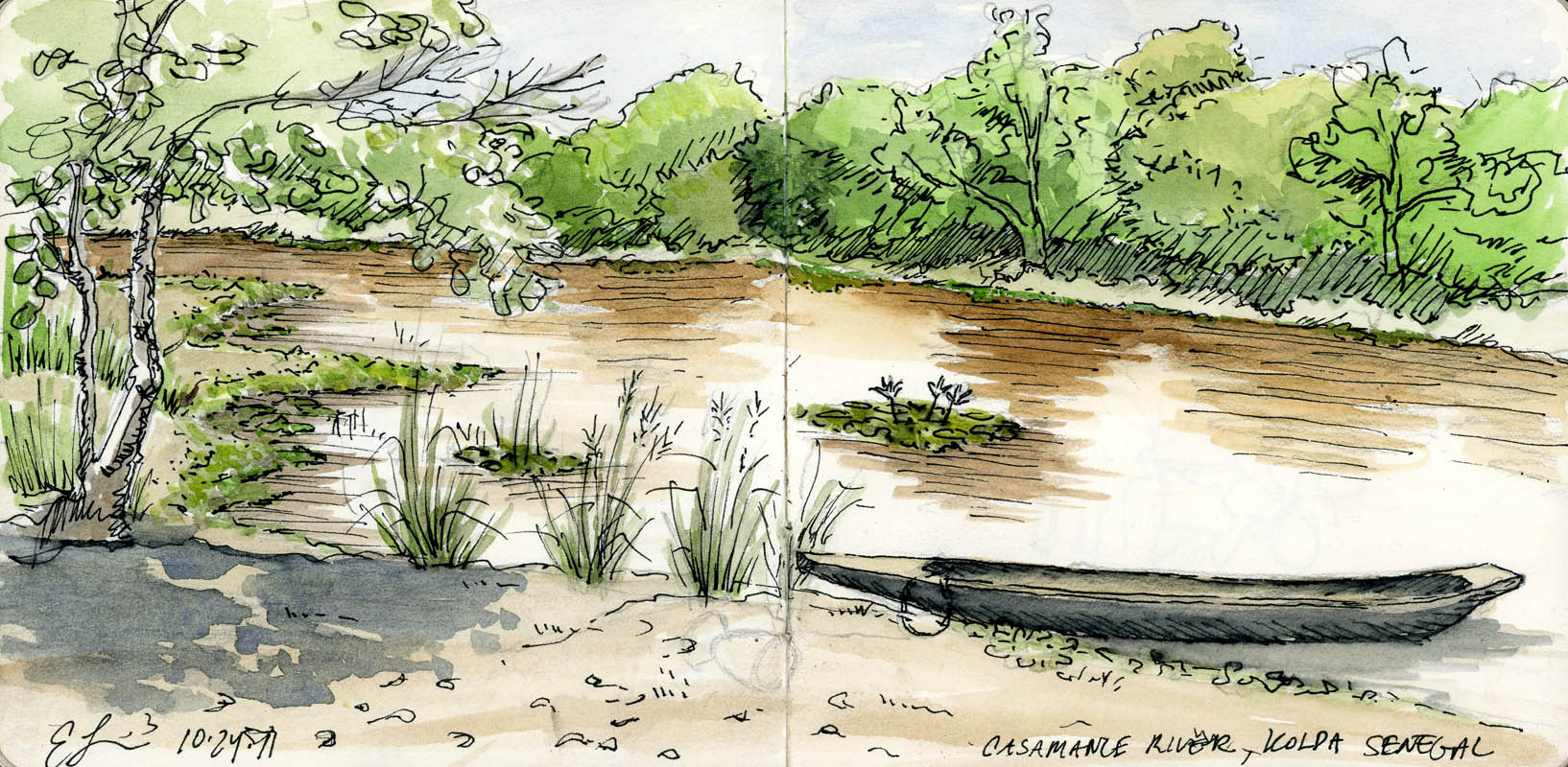 12 NovI’m back on the road with my sketchbook, this time traveling with my sister in West Africa, specifically Senegal and Mali. My sister, Maya, has been living in Senegal for the past two years, working as a Peace Corps volunteer. She just finished her tour, and we decided to travel together. She showed me the places she knows in Senegal, including the town that she was based in. Then we traveled overland to Mali, a new place for both of us.
